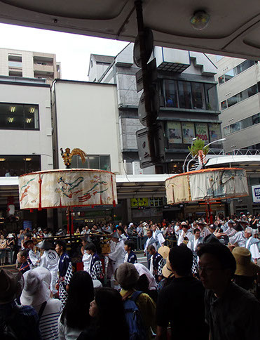 天保2(1831)念に北観音山が新造したのにともない、その残った部材で曳鉾を作り、天保5年から巡行に参加しました。しかしわずか30年後、禁門の変に続く兵火に遭い、鉾は焼失してしまいます。明治12年から5年間は徒歩囃子で巡行しますが、いったん途切れ、昭和54年に復興しました。