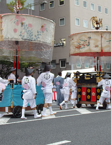 町内に祭りを支える家が少なく、参加型の後援会形式を取り入れています。後援会は会費1万円で、全国各地の方が祭りに参加することができます。鉾を曳いたり、宵山に行われる棒振り囃子の公演が見られたり、御池通の観覧席が1席確保できるなど、祭りを楽しむ特典が豊富です。