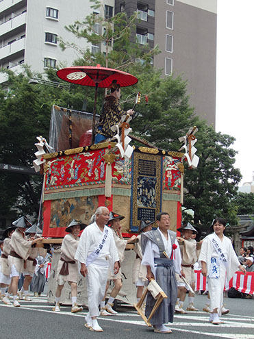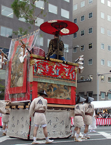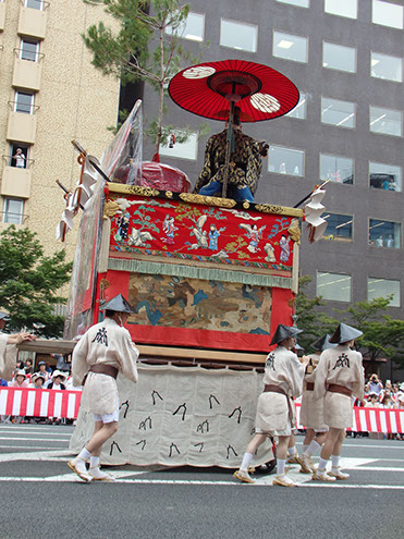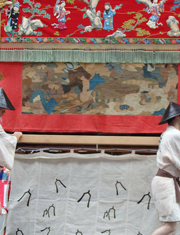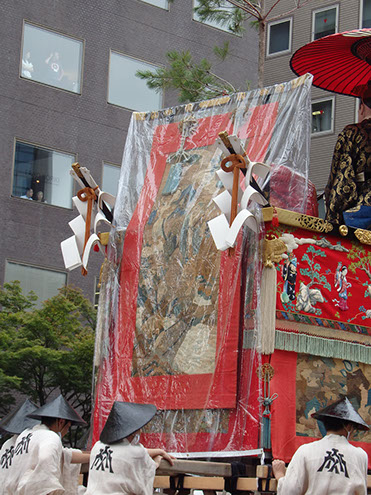 他の山鉾とは趣が違って山の装飾に統一感があり、水引・胴懸・見送・金具の図柄にいたるまで懸装品はすべて中国風となっています。