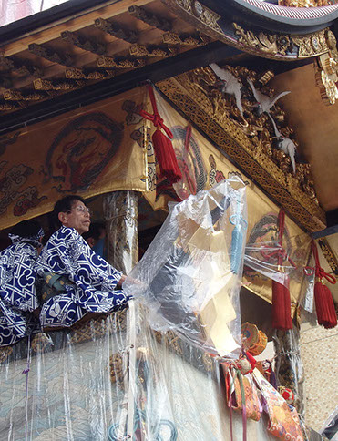 祭りのときは、会所の2階から土蔵の2階にかけて、19mに渡る長い橋が架けられています。会所飾りの際には、この町会所建築にも注目が集まります。