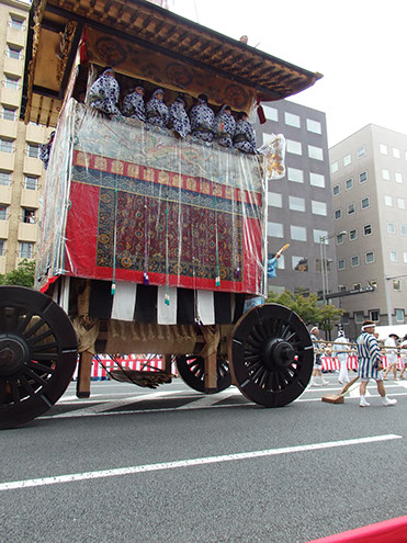 放下鉾のお囃子は、鉦、太鼓、そして能管という笛で構成されています。この3つの楽器で40曲を演奏します。