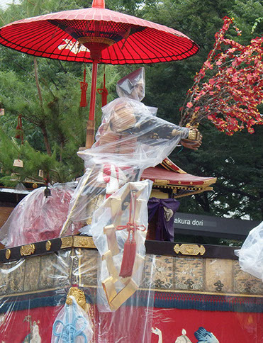 ところが明治時代、引敷を知らない人が間違って背中に据え付けられたらしく、近年までそのままになってしまっていました。保昌山保存会では、江戸時代の絵にのっとって、布の位置を変えるかどうか、大いに悩んだ末、本来の姿に戻して巡行しています。