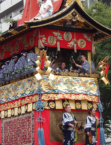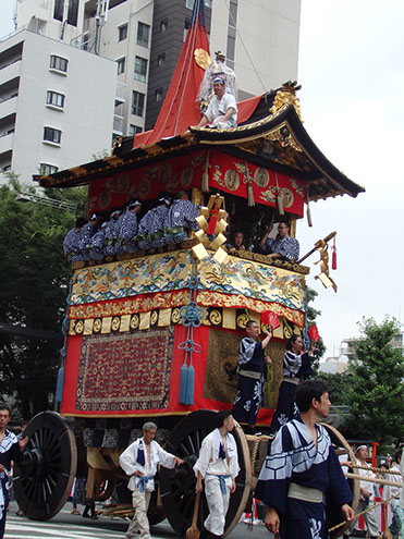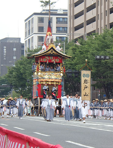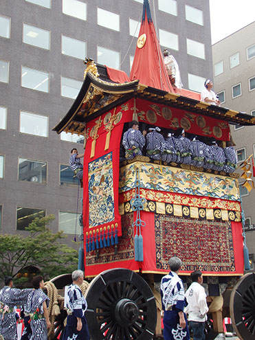 山ではありますが、鉾と同じように車輪をつけた曳山で、室町時代に改造されました。山である証に、真松を立てています。18世紀にインドで製作された胴懸、後懸の緞通も有名です。