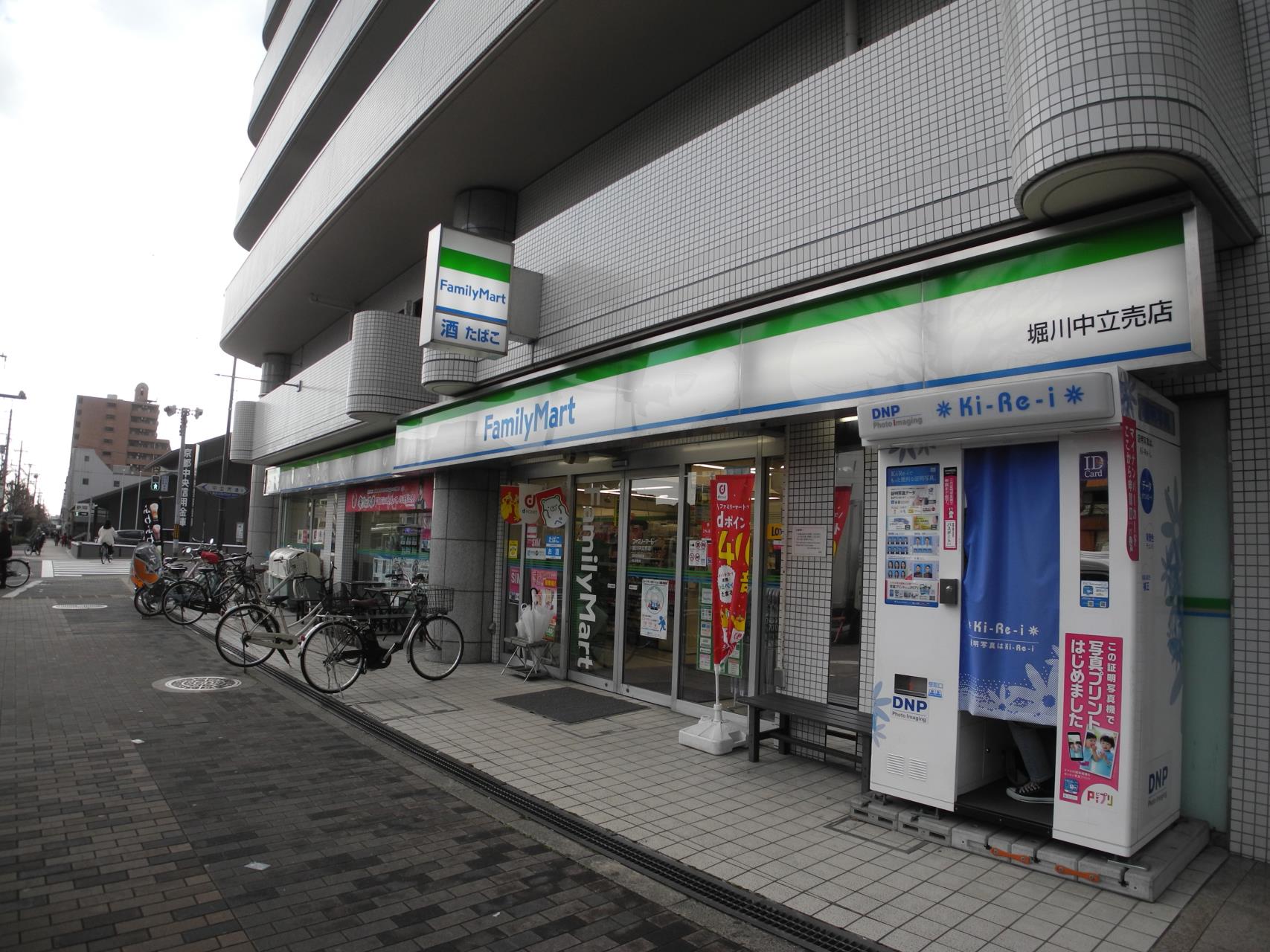 スーパー(ライフ西陣店)329m コンビニ(ファミリーマート堀川中立売店)53m ドラッグストア(ダックス上京智恵光院店)424m 病院(堀川病院)608m 郵便局(京都堀川下長者町郵便局)270m 銀行(京都中央信用金庫西陣支店)35m