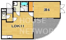 洋6×LDK11 最上階角部屋1LDK賃貸。